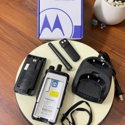 – Trọn bộ bao gồm: Thân máy, antenna, Pin sạc, adaptor, bát cài lưng.