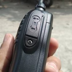 Nhấn giữ phím PTT trong suốt quá trình liên lạc để truyền thông tin sang máy thu. Rồi nhả phím để nhận tín hiệu ngược trở lại. Trong quá trình liên lạc phát(nói) đèn đỏ, nhận(nghe) đèn xanh. 2 phím kế bên: phím trên dò kênh phím dưới báo kênh. |